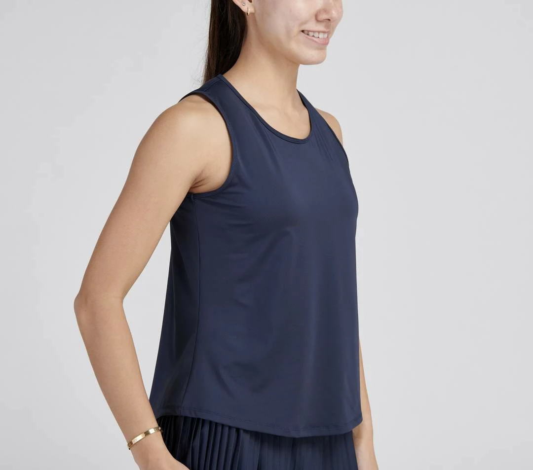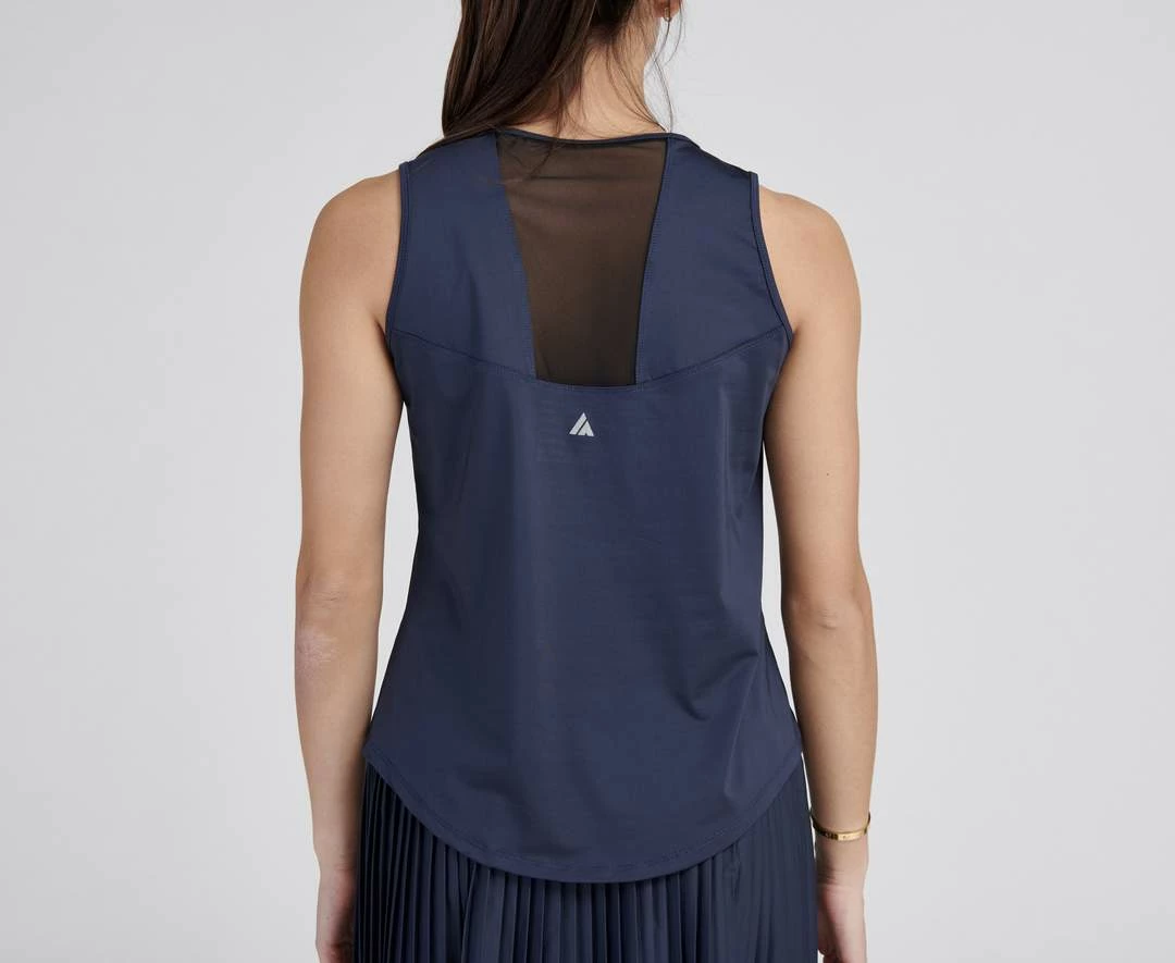 Ace Full Coverage Tank offers maximum comfort with its moisture wicking soft fabric and relaxed fit. This tank is designed to offer extra room on the shoulders and back while not compromising any detail. Featuring a back mesh panel and rounded bottom seam, this versatile tank pairs perfectly with any skirt or leggings for everyday coverage.